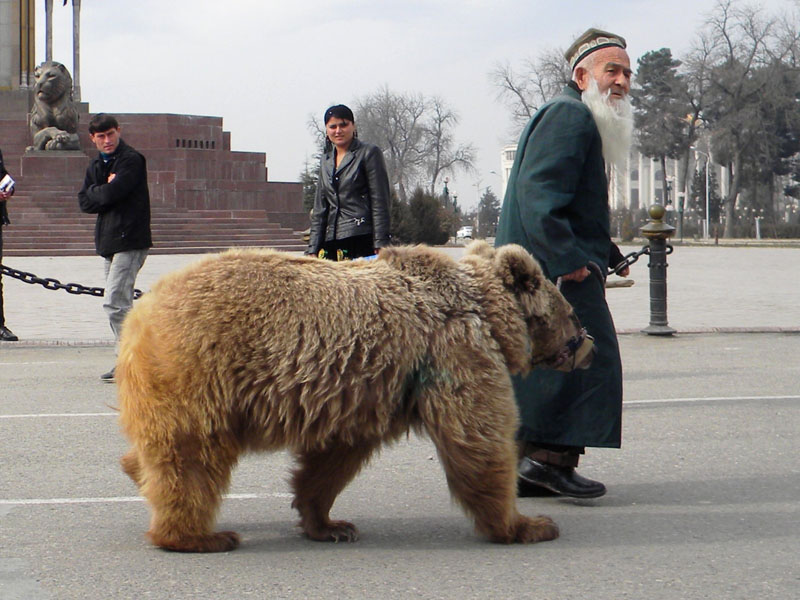Многие душанбинцы до сих пор помнят эту необычную пару 90-х: невысокого роста старика, который гулял по улицам города со своей «подопечной» — медведицей по имени Мария. Этот тандем стал неким символом эпохи становления мирной жизни, а их выступления — одним из немногих развлечений для местной детворы.