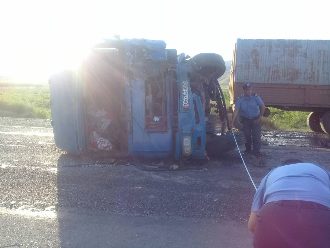 ДТП произошло в районе города Таш-Кумыр. Столкнулись три машины – грузовик MAN, в котором находилось 2 человека, "Хонда Одиссей" — 6 человек и "Хонда Степвагон" — 9 человек.