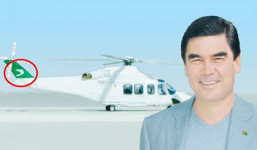 Что касается вертолета, то он размыт, а логотип на хвосте очень резкий, его однозначно вклеили. Президента снимали на улице, под ним наконец-то появилась тень. Бердымухамедов и клумба – это один кадр, а дальше непонятно. Кажется, что верхняя часть кадра вертолета с небом взята из другого кадра. Серый фон и небо также смущают. Нет адекватной линии горизонта, такое ощущение, что до горизонта идет бетонная пустыня, хотя Туркменистан горная страна.