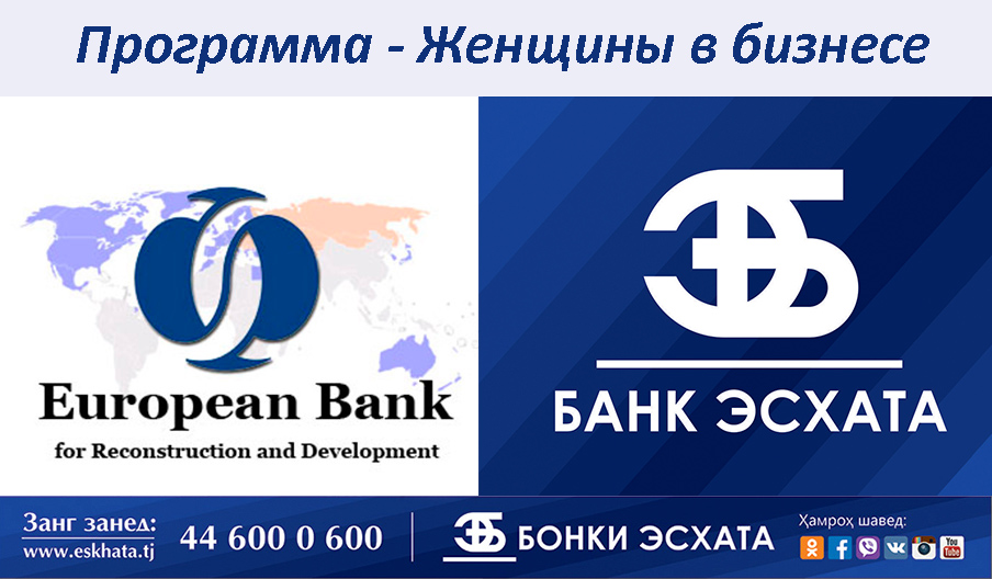 Банк Эсхата стал первым партнерским банковским учреждением в Таджикистане, который присоединился к программе «Женщины в бизнесе». В рамках данной программы Банк Эсхата и ЕБРР уже подписали двухстороннее соглашение, в результате которого Банк Эсхата получит 1 млн. $ США эквивалентно в таджикских сомони для кредитования женских коммерческих предприятий по всей стране.
