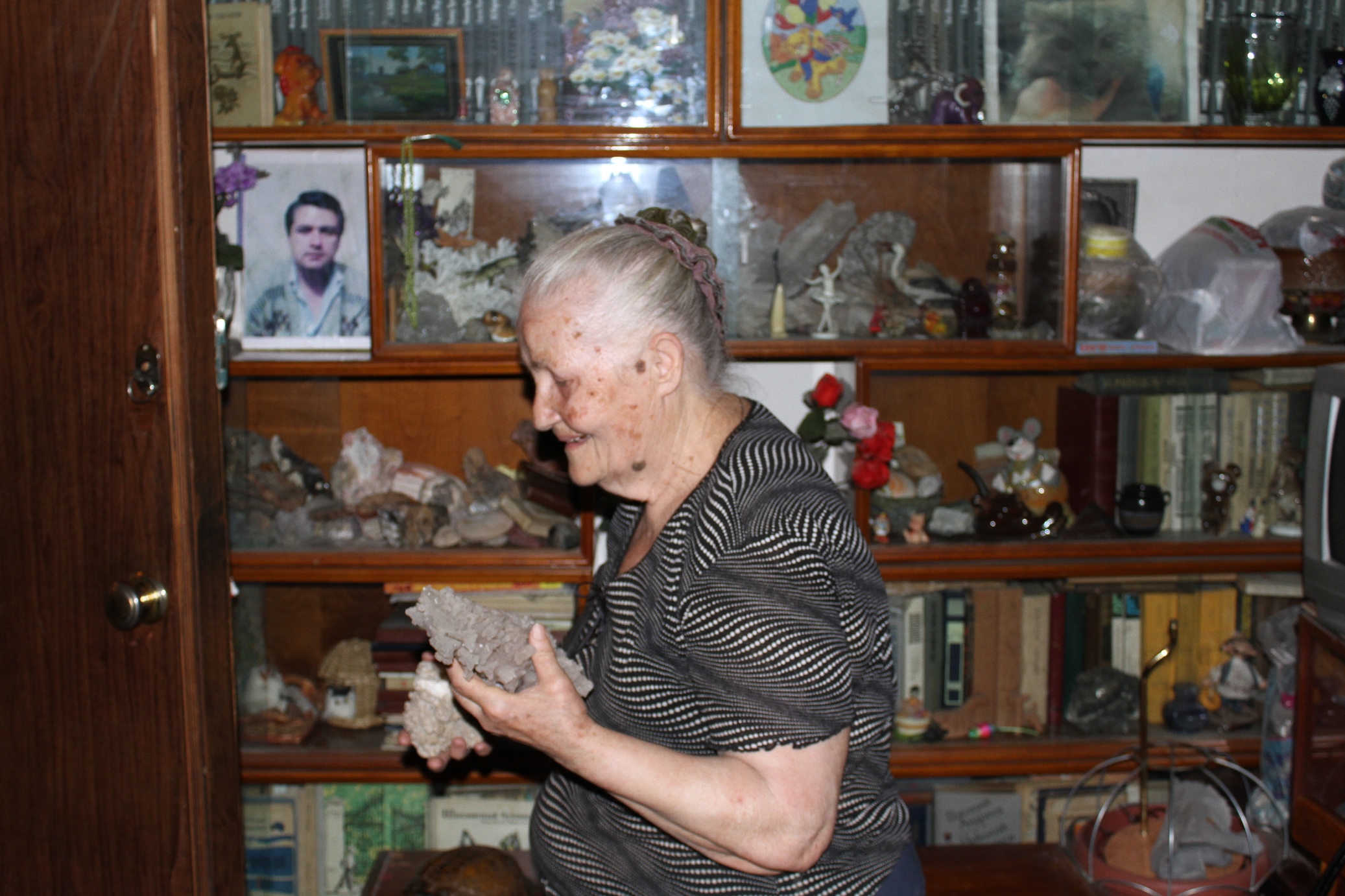 Куда все это ушло? Что у меня осталось? Только эти камни, да книги, да картины мужа, он хорошо рисовал тушью. И вот эта квартира пока осталась, здесь вся жизнь моя и прошла.