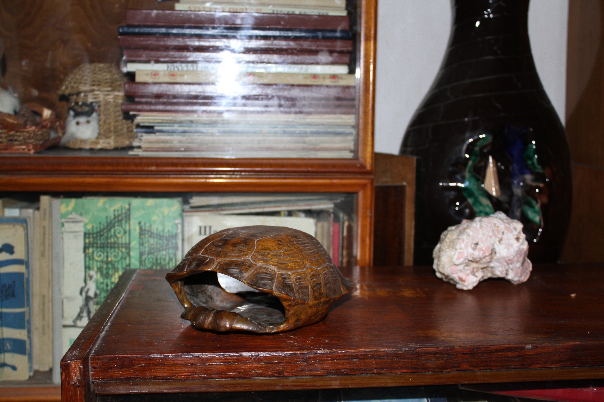 Мы действительно были довольны, даже своей крошечной комнаткой. Я постоянно находилась «в поле», работала геологом, вела, так сказать, матрасный образ жизни. Объездили всю республику – в Мургабе стояли, золотишко там искали, где только не были. Вот у меня вся квартира заставлена трофеями из наших экспедиций – камнями, соляными кристаллами. А вот черепаший панцирь — это была первая черепаха, которую я съела в горах.