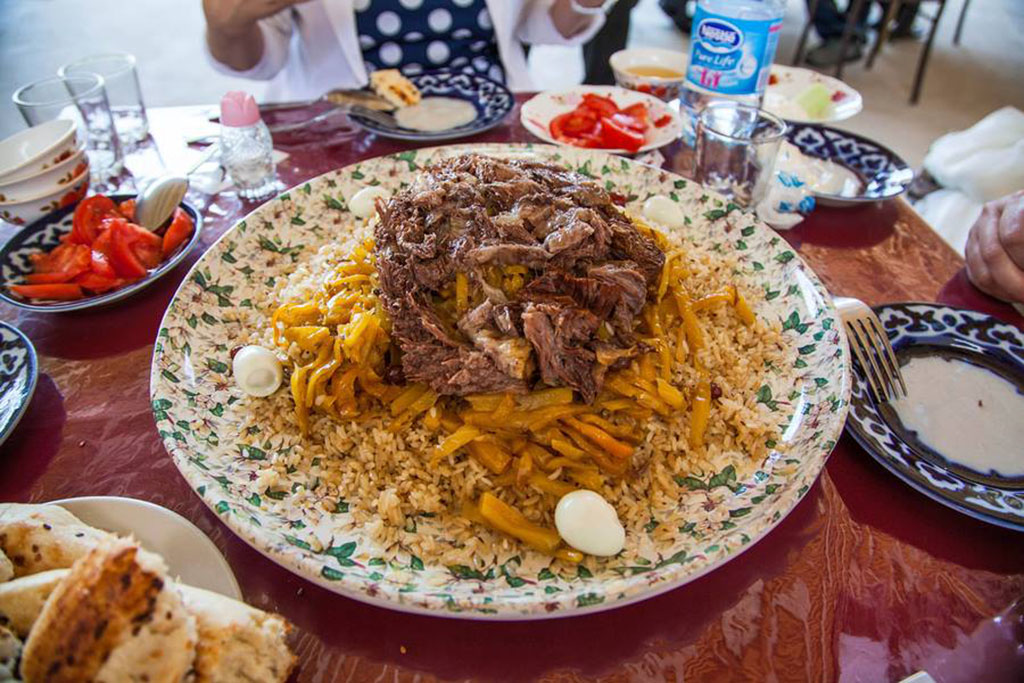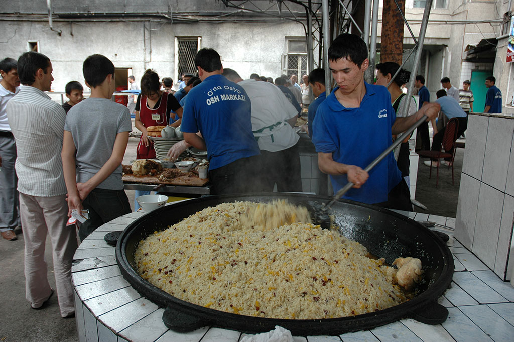 Дальше туристы идут прямиком к знаменитому Центру плова, где в пяти казанах ежедневно готовится национальное блюдо на более чем тысячу человек.
