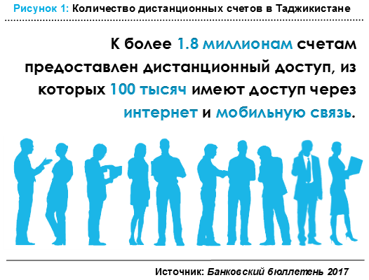Один из показателей современного делового человека активно живущего и развивающегося в социуме является наличие у него банковского счета. Охват обслуживания населения финансовыми услугами, напрямую отражает экономическое состояние страны. Благодаря усилиям банковской системы Таджикистана, в последние годы в системе наблюдалась тенденция роста количества банковских счетов физических лиц. За период с 2012 по 2016 годы, их количество возросло с одного миллиона до трех миллионов счетов.