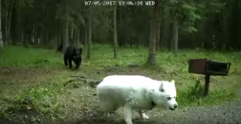 Автор видео Том Хендерсон сообщил порталу Mashable, что медведицу отпугнула его жена. Собака, несмотря на жуткий визг, не пострадала.
