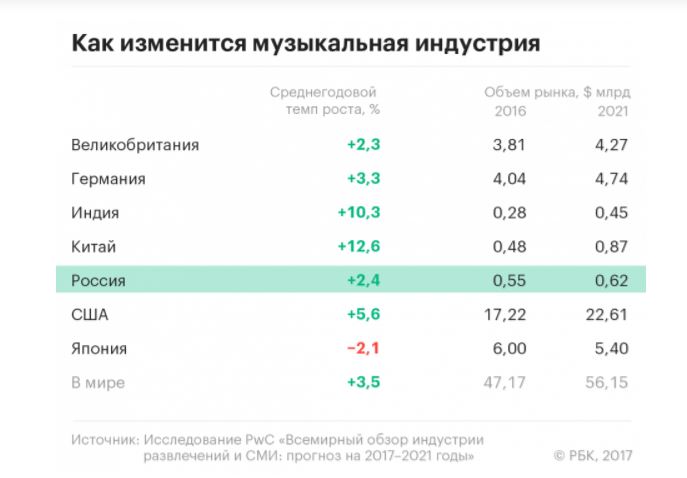По итогам 2016 года объем рынка развлечений и СМИ в России составил $17 млрд, в 2017 году он вырастет до $18 млрд, а к 2021 году — до $23 млрд, прогнозируют в PwC. В пятилетней перспективе среднегодовой темп роста всей индустрии развлечений и СМИ в России прогнозируется на уровне выше общемирового — 7,2%. Но, как отмечается в исследовании, многие сегменты уже «достигли предела своего насыщения», и теперь, для успешного развития, «компаниям необходимо оперативно адаптироваться к быстро меняющимся тенденциям рынка и инвестировать в развитие новых технологий». «Все эти факторы особенно важны для медийной индустрии, где инновации могут в короткие сроки изменять поведение и предпочтения потребителей», — советуют аналитики PwC.
