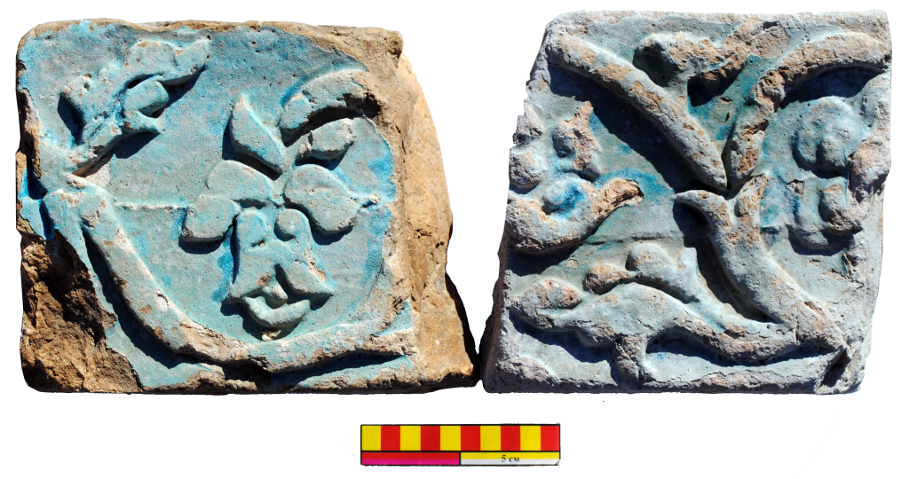 Здесь найдены фрагменты обожжённых кирпичей и плиток, украшенных налепным растительным орнаментом, а также железные и бронзовые гвозди. Интересна находка деревянной палочки для письма – калама.
