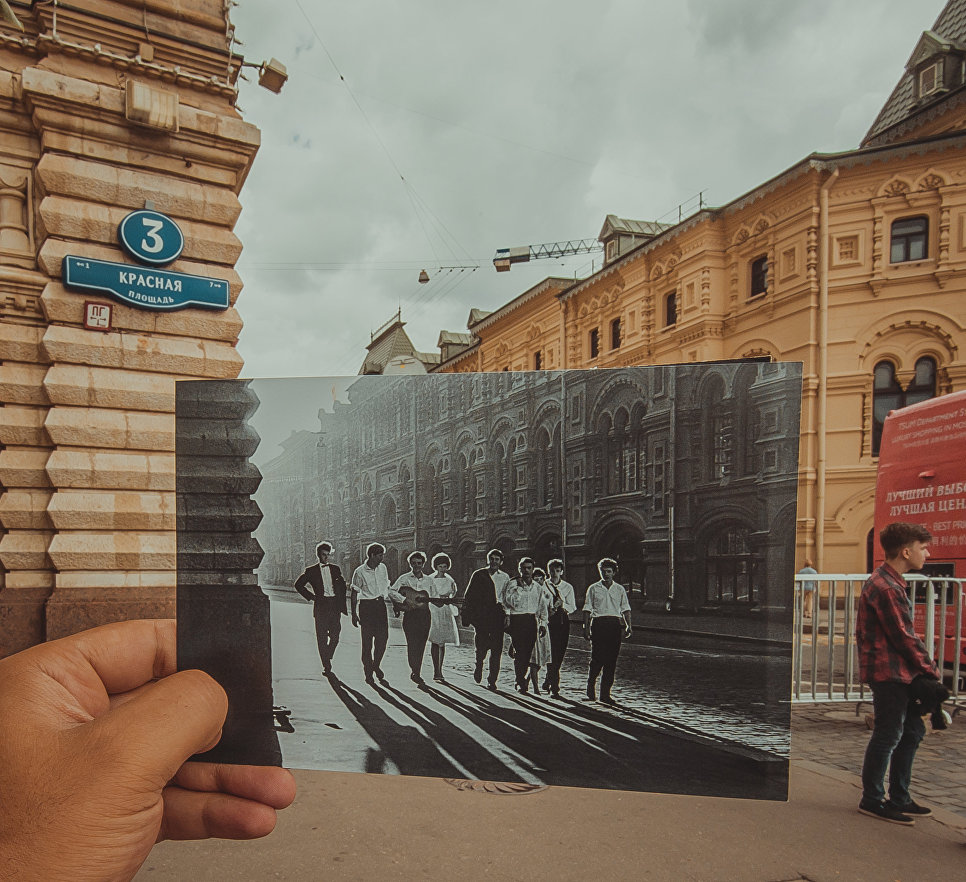 Азербайджанский фотограф Камал Багирли воспроизводит старинные снимки мировых столиц, включая Москву, спустя десятки лет.