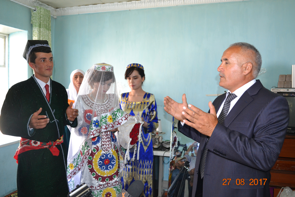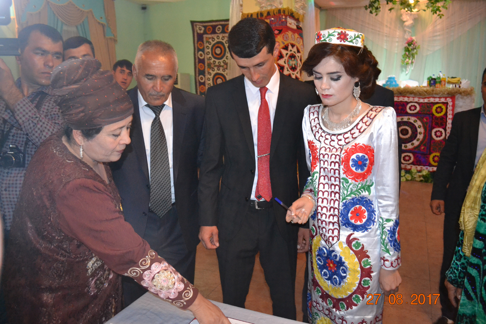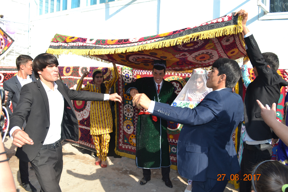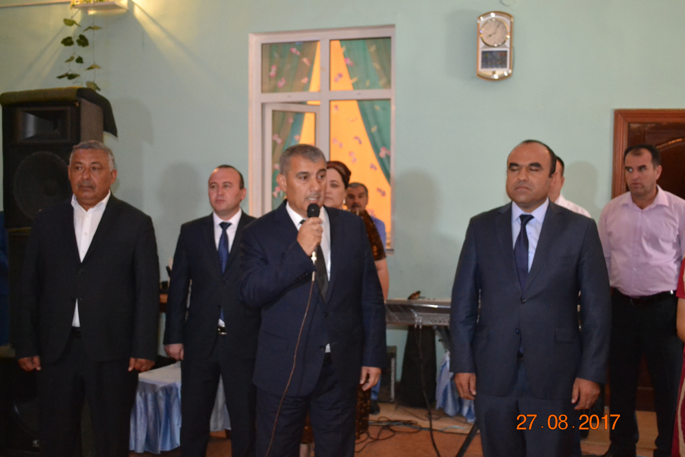 Поздравить молодоженов приехал из Душанбе глава комитета по делам молодежи и спорта Ахтам Абдуллозода. Пожелав молодым счастья и удачи, Абдуллозода напомнил, что неслучайно они сыграли свадьбу именно в этом году, год который был объявлен президентом Годом молодежи. Он напомнил, что свадьба организованы при личном содействии президента, и это является своего рода продолжением созидательной молодежной политики руководства страны, в том числе президент страны.