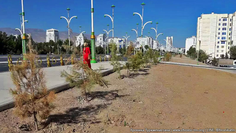 Например, в конце апреля месяца саженцы сосен высадили вдоль одного из столичных проспектов, где должны были состояться торжества в честь открытия нового тоннеля, сообщает «Хроника Туркменистана». Однако деревья в скором времени высохли.