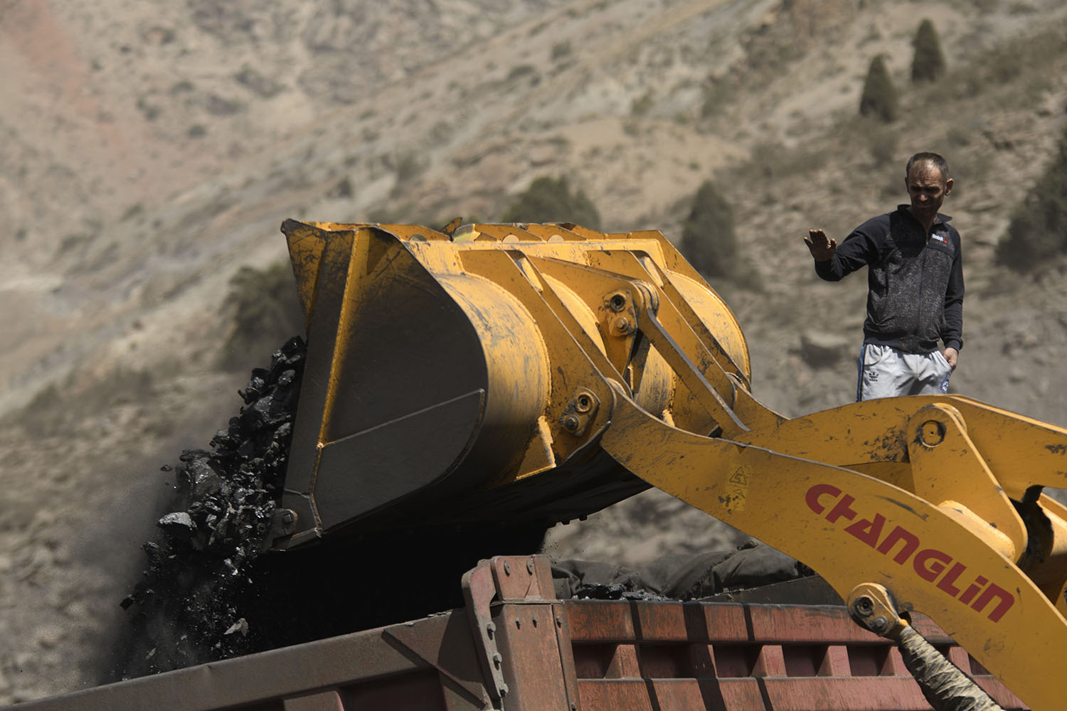 Чтобы увидеть, как добывают уголь, группу журналистов подняли на машинах на точку в 3000 тыс. метров над уровнем моря. Здесь с недавних пор добывают уголь открытым карьерным способом, а шахту закрыли два месяца назад.
