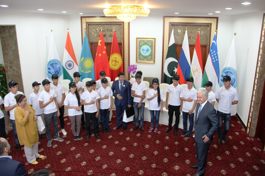 30 августа в штаб-квартире ШОС в Пекине в рамках «Дня открытых дверей» состоялась встреча Генерального секретаря организации с учениками школ-интернатов Таджикистана, которые знакомятся с Китаем, путешествуя вдоль Шелкового пути.