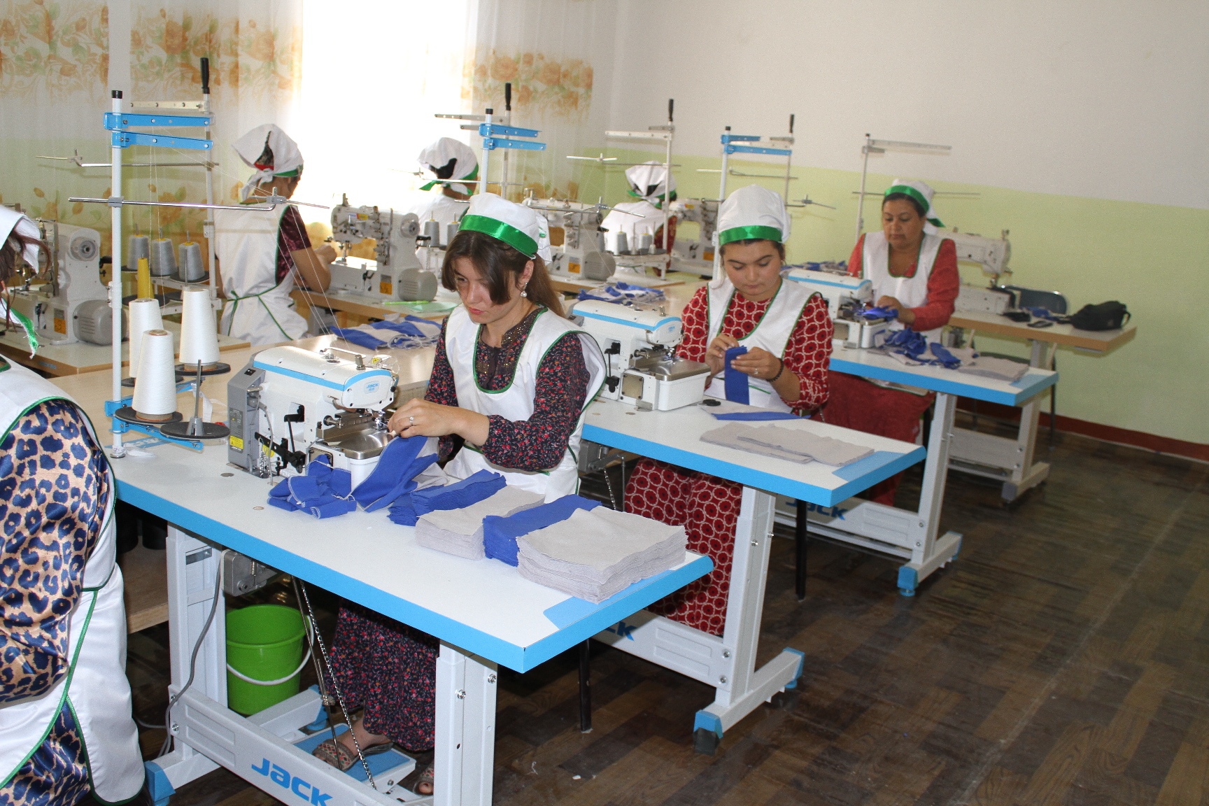 Модель работы этого цеха выстраивали всем миром. Идею его создания придумали в «Фонде развития общества», над ее бизнес-планом работали сотрудники Фонда «Евразия Центральной Азии», помещение предоставили городские власти, обучение девушек проходило на базе Центра занятости населения при Минтруда, оборудование вскладчину приобрели за счет гранта от USAID и финансирования со стороны бизнесмена Мумина Фазилова. Он же предоставляет в цех сырье и занимается реализацией готовой продукции.