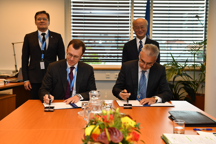С российской стороны документ подписал заместитель генерального директора Госкорпорации «Росатом» Николай Спасский, со стороны МАГАТЭ – заместитель генерального директора МАГАТЭ – руководитель Департамента ядерной и физической ядерной безопасности Хуан Карлос Лентихо.