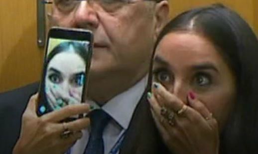 На кадрах видно, как Ильхам Алиев рассказывает в ООН о Нагорном Карабахе и называет президента Армении военным преступником. В это время его жена и старшая дочь переглядываются и улыбаются. Затем Лейла Алиева сделала селфи с удивлённым лицом.