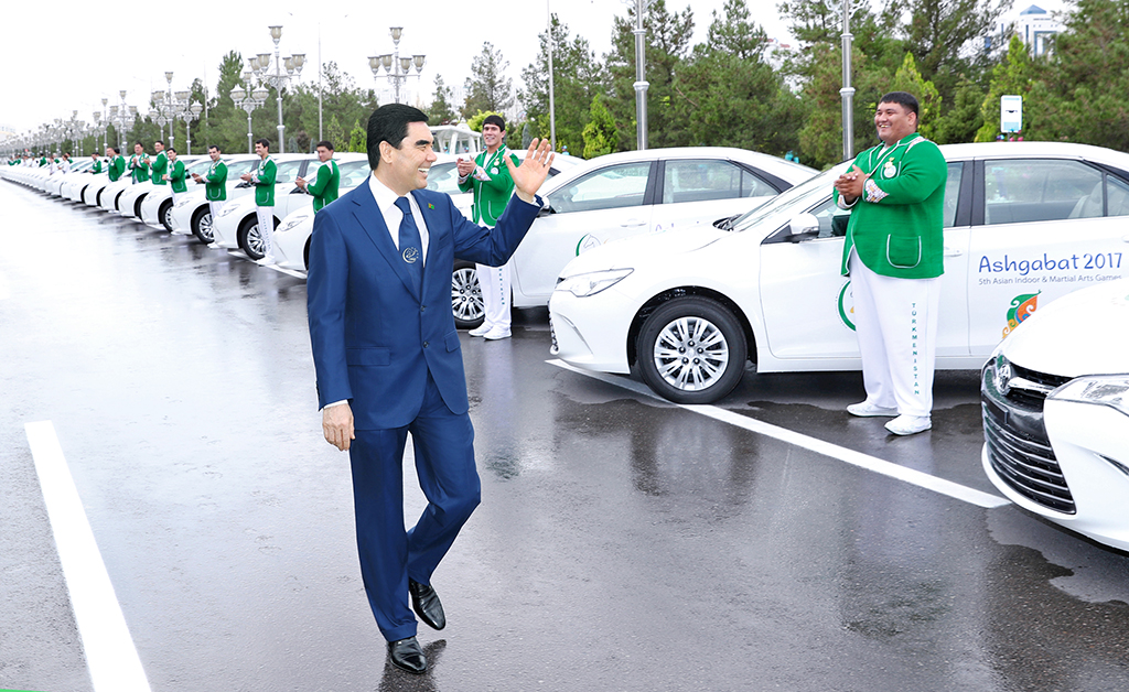 От имени президента спортсмены, удостоенные на играх "Ашхабад-2017" золотой медали, получили автомобили Toyota Camry GL Executive; обладатели серебряных медалей — $5000; бронзовые призеры — $3000; тренеры победителей и призеров — автомобили Toyota Camry GL Executive.