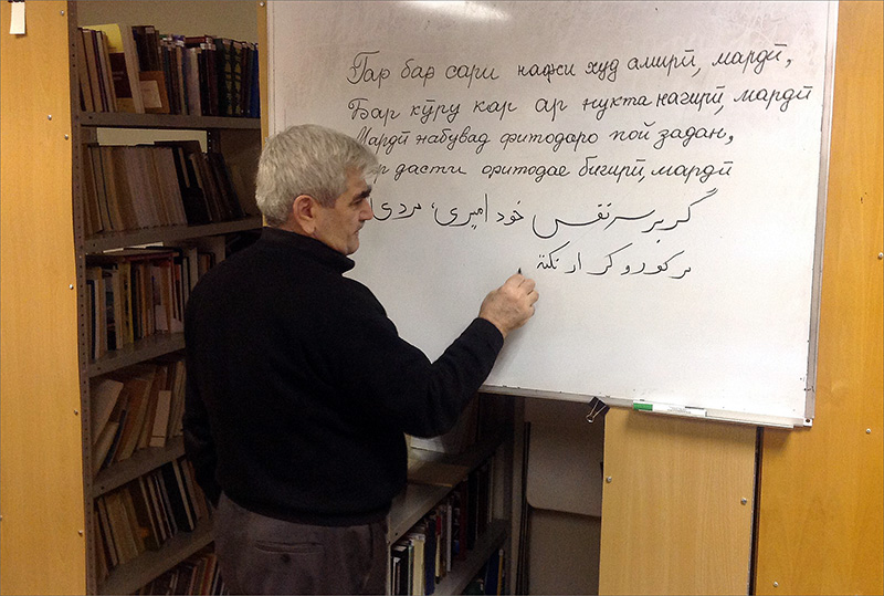 «Я более 15 лет работаю на Таджикском алюминиевом заводе и преподаю таджикский язык на курсах, организованных руководством компании для своих инженерно-технических и рабочих кадров. Мы ведем обучение, в основном, опираясь на свою практику, собираем нужные данные из различных источников. Существующие учебники, например, того же Арзуманова, уже устарели. Пришла пора их обновить. За 25 лет появились новые слова и термины, изменилась орфография большинства слов и так далее. На заводе мы вели обучение кадров таджикскому языку на двух уровнях. Первый уровень – облегченный вариант предназначался для тех, кто совершенно не знал таджикского языка, второй уровень – для тех, кто знал и понимал таджикскую речь, но не владел литературным языком, третий уровень – усовершенствование знаний по таджикскому языку».