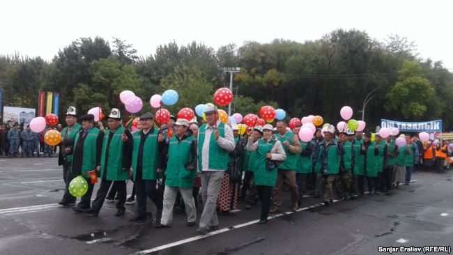 Праздничные мероприятия начались с торжественного марша работников госструктур и предприятий Оша. Участники с вывесками названий ведомств, с шарами и цветами в руках проходили под звуки специально подобранной для них музыкальной композиции, что придало празднику советскую атмосферу.