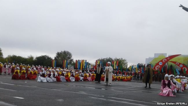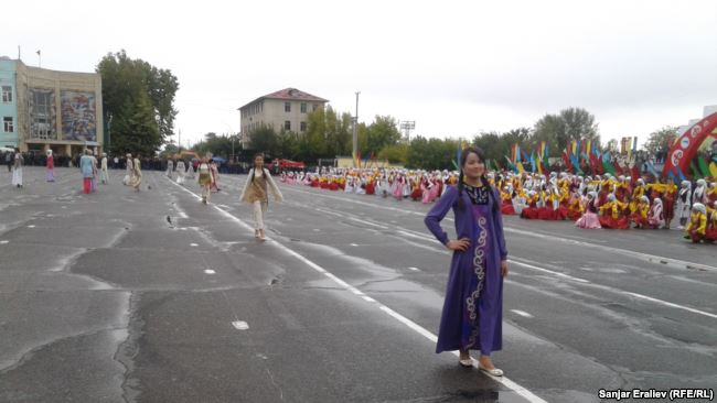 На центральной площади Оша люди начали собираться с самого утра. Несмотря на хоть и мелкий, но холодный дождь, горожане с неподдельным интересом наблюдали за выступлениями на площади. Женщина чуть за пятьдесят выделялась в толпе особым настроением, жизнерадостностью, видно было, что она получает наслаждение от каждого номера праздничной программы. Она представилась жительницей микрорайона «Туран» Караматхан Нишанбаевой.