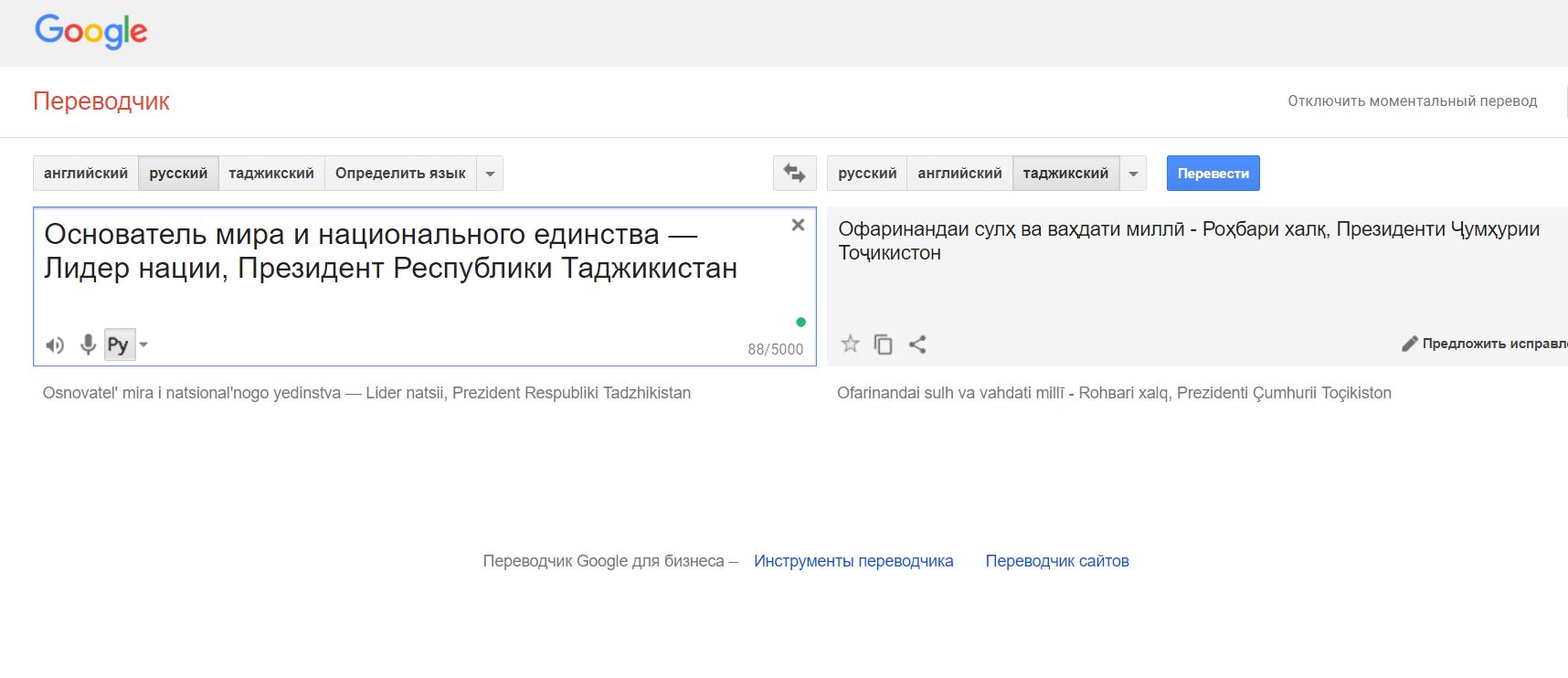 В 2014 году Google Translate ввела таджикский язык в список своих языков. Указывалось, что таджикский язык родственный современному персидскому языку, и на нем говорят более 4 миллиона человек в Таджикистане и за его пределами. В базу Google Translate входит более 90 языков.