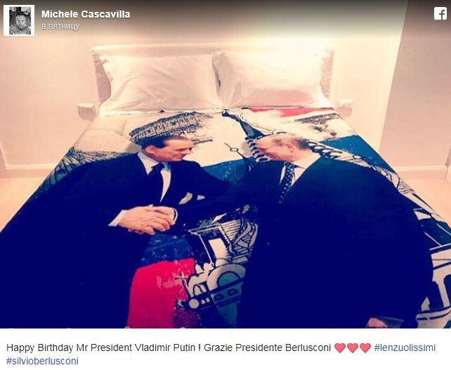 Итальянские СМИ сообщили, что Берлускони прилетел в Сочи и лично вручил пододеяльник Путину.