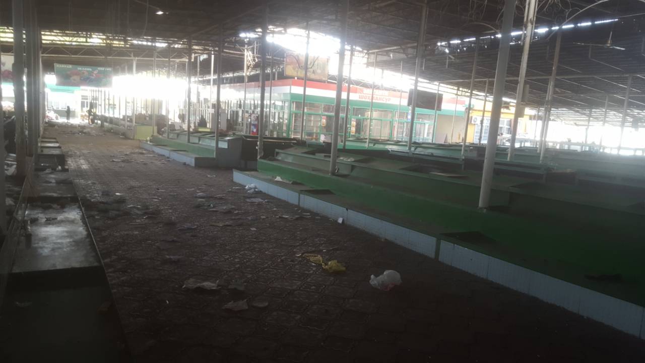 На душанбинском рынке «Шохмансур» («Зеленый базар»), который будет снесен в ближайшее время, сегодня пусто: только торговцы пытаются упаковать свой товар и освободить прилавки. Посетителей на рынок не пускают.