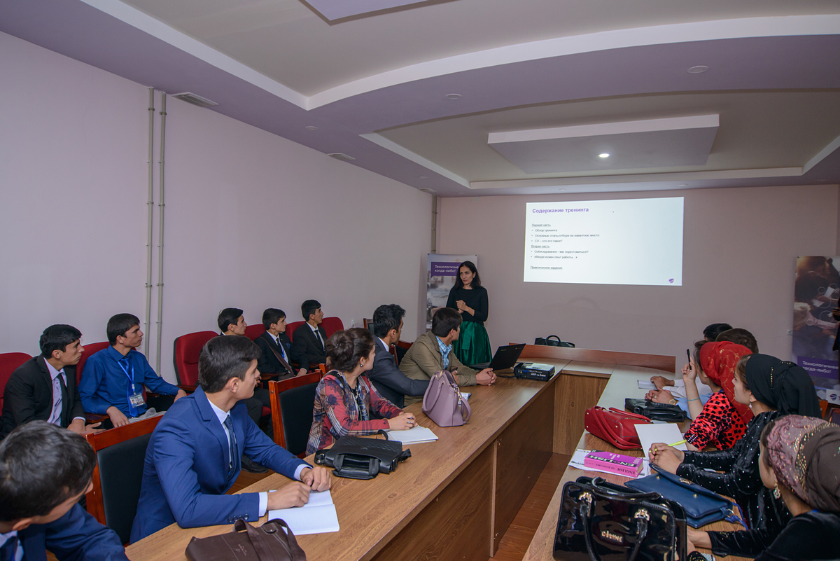 Лекции «Интервью для приема на работу» прошли уже в 2 вузах страны – в Таджикском Технологическом Университете в г.Душанбе и в Кулябском Государственном университете в г.Куляб, в сотрудничестве с Центрами карьерного роста данных университетов. Эти Центры выполняют роль сообщества, куда студенты могут обращаться за практическими советами по нахождению и подаче заявок на работу.