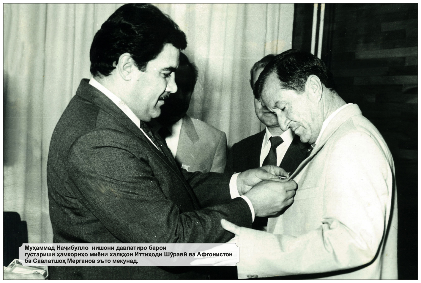 ИЗОБРАЖЕНИЕ Лидер Афганистана Наджибулла вручает медаль Мерганову за вклад в развитие двухсторонних отношений между Афганистаном и СССР