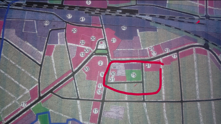 На карте квадратом выделена территория, где сейчас находится центральный рынок района. После его сноса здесь будут построены: на участке под номером 30 – банк, на участке под номером 31 – станция скорой помощи, здесь же будет высотный дом, а на участке №75 – парк культуры и отдыха.