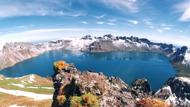 Вулкан Пэктусан находится на границе КНДР и Китая и является высшей точкой Корейского полуострова. Согласно мифам, этот вулкан является местом рождения корейского народа.