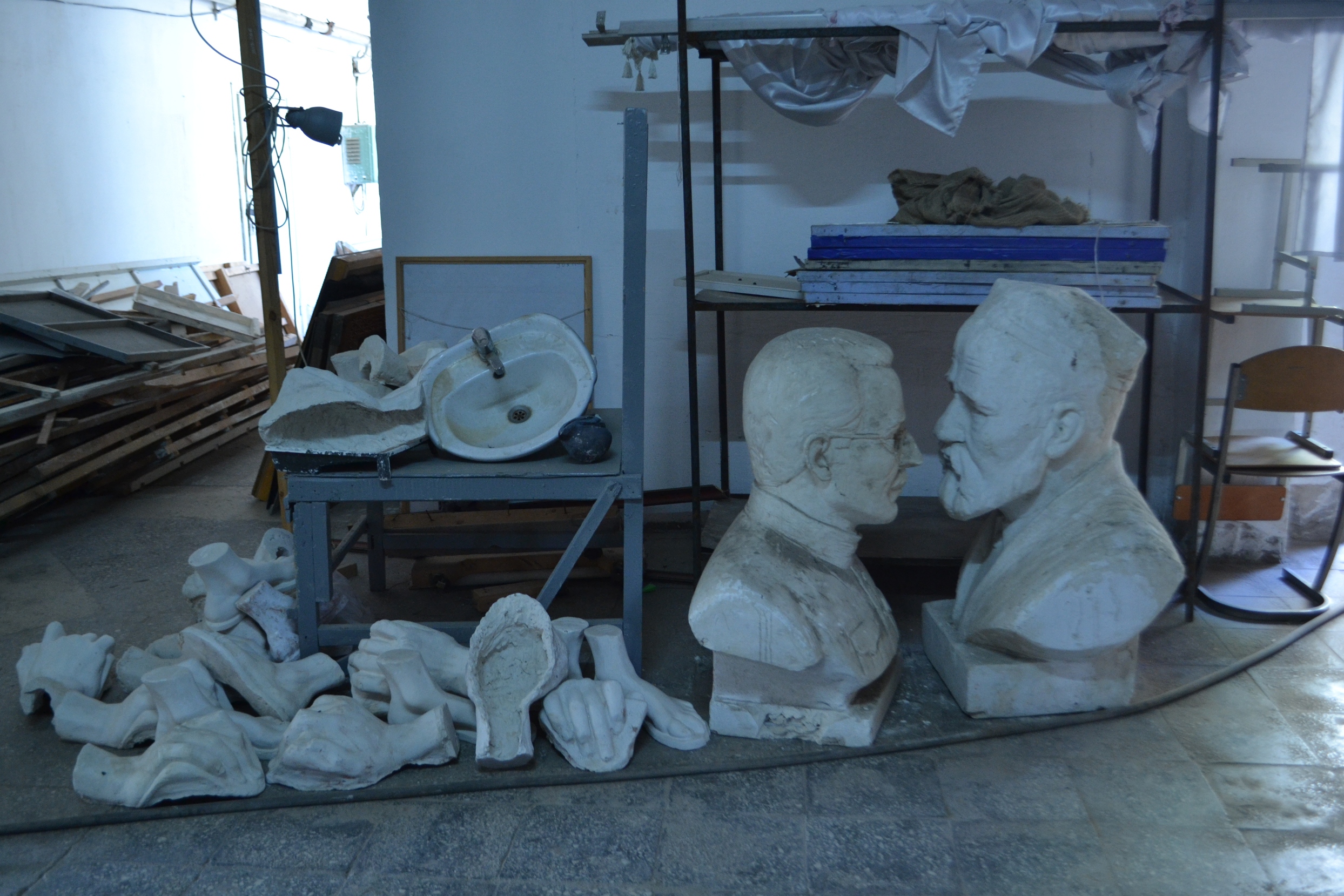 Кучи нераспакованных вещей, картины, какие-то доски, балки, бюсты — иду осторожно, чтобы все это случайно не задеть, ненароком не испортить. Металлическая лестница на второй этаж, и тут попадаешь в огромный ангар, который обычно бывает на заводах. Это склад какого-то предприятия, а в настоящее время здесь разместили парты, стулья и соорудили что-то типа школьной доски. Из комнат, расположенных по левому краю здания, слышатся голоса студентов и преподавателя: идут занятия по истории. Старое и давно не видевшее ремонта здание, казалось, оживилось от голосов студентов, которые заполнили главный коридор.