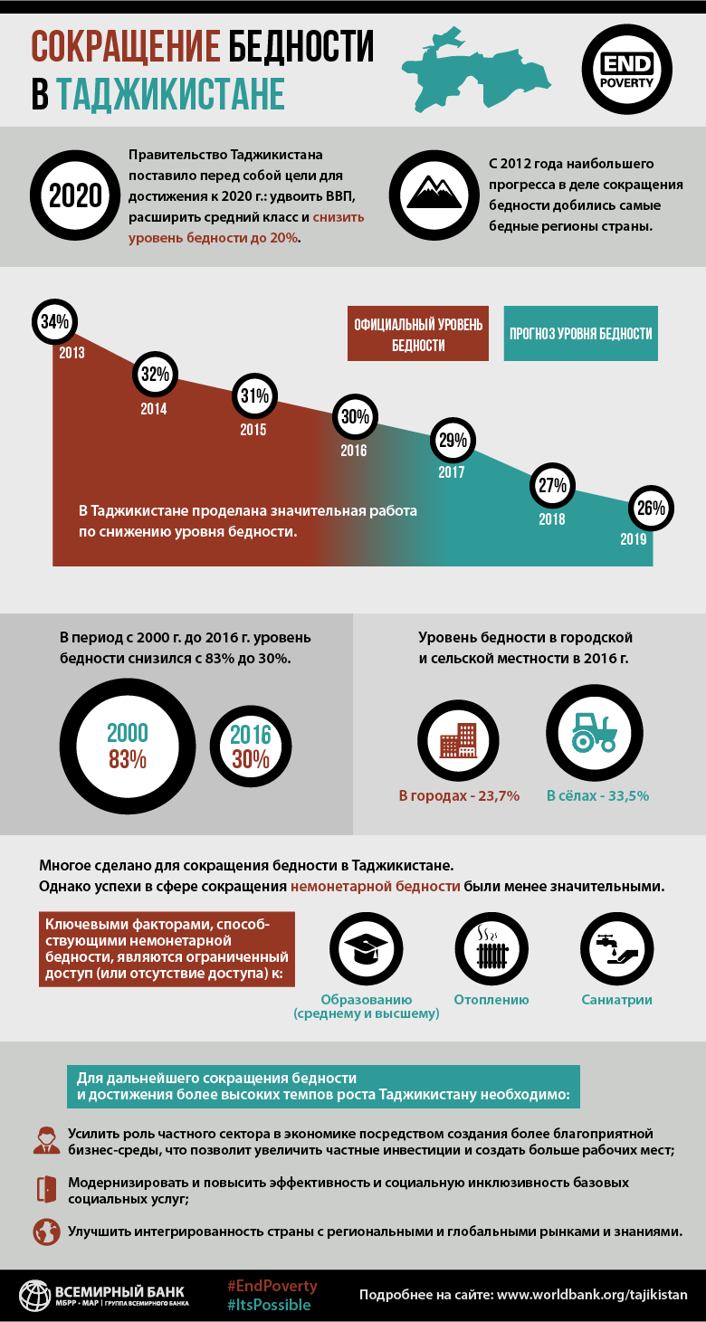 Всемирный банк для сокращения уровня бедности и достижения сравнительно высоких темпов экономического роста рекомендует Таджикистану усилить роль частного сектора в экономике.