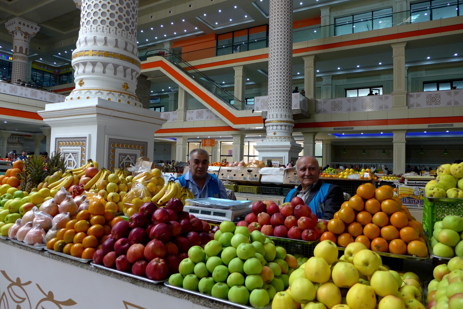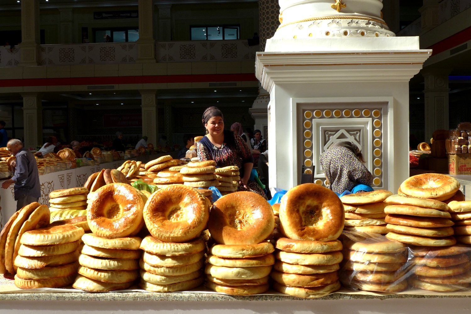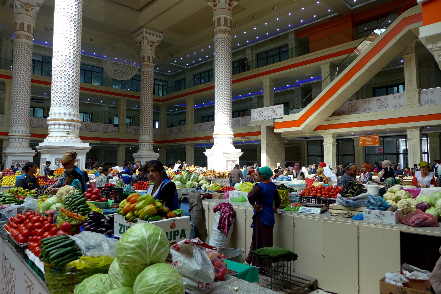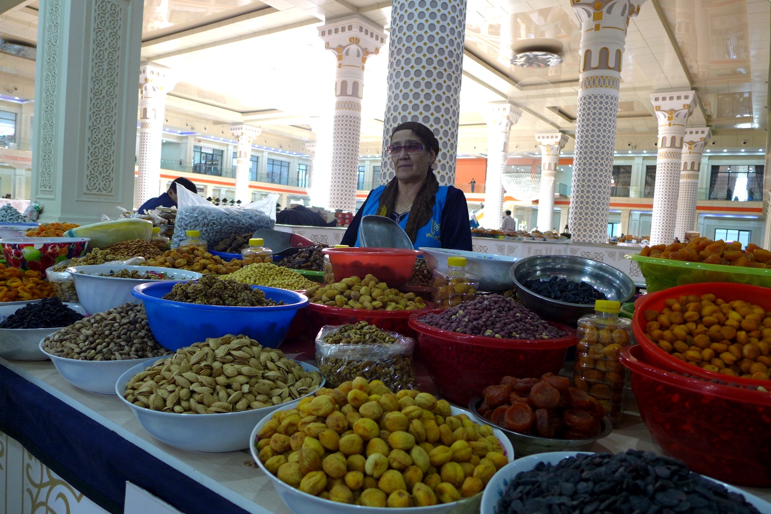 При входе на рынок стоят тележки, так что таскать с собой тяжелые сумки вам не придется. Половину продавцов уже переодели в форменную одежду «Мехргон», которую они должны купить за 70 сомони.