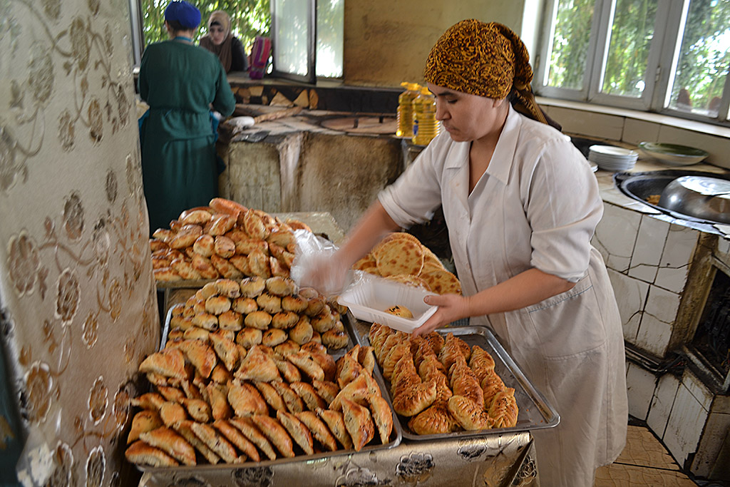 Он действительно никуда не торопится. Вокруг работа кипит – женщины только успевают доставать из тандыров (традиционные печи, – прим. ОА) горячие лепешки и кульчи, болтают, шутят, суетятся; уже началась утренняя бойкая торговля, покупатели пришли за горячим хлебом — ошпаз невозмутим. Помолился, медленно налил масло в казан, отошел в сторону.