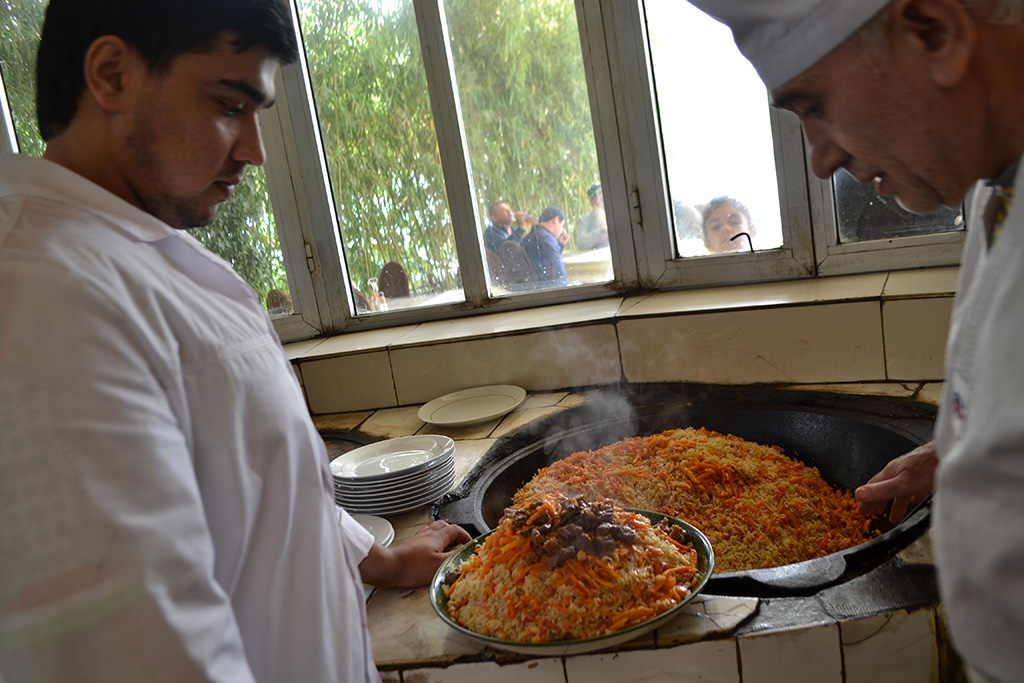 Акаи Махмад рассказывает, что поварскому делу начал учиться сразу после окончания школы, сначала помогал родственнику на ресторанной кухне, потом прошел школу Высшего кулинарного мастерства в Душанбе, тогда же обзавелся своим устодом (учителем, – прим. ОА), который научил его готовить плов, – только после того, как акаи Махмад уже стал классическим, профессиональным поваром. Он говорит, что приготовление плова – это особенный случай, это почти ритуал, и к тому, чтобы его выполнять, нужно быть готовым, прежде всего, духовно. Потому что на каждый ингредиент плова раньше вообще читалась сура из Корана; рядом с местом его приготовления не допускались конфликты и, упаси бог, распитие спиртных напитков.
