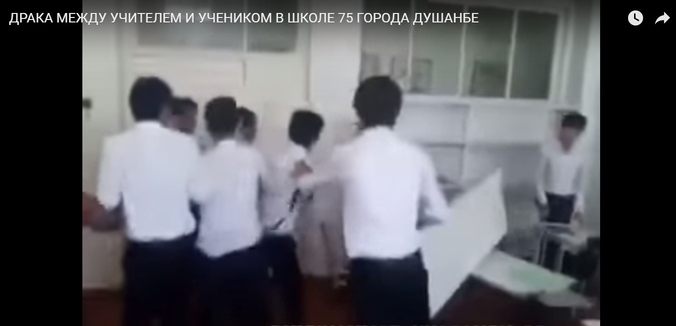 19 октября в интернете было размещено видео драки между учителем и учеником, которая произошла в школе №75 города Душанбе. Министерство образования и науки Таджикистана прокомментировало и осудило данный инцидент. Полный текст заявления министерства был размещен на сайте госагентства «Ховар».