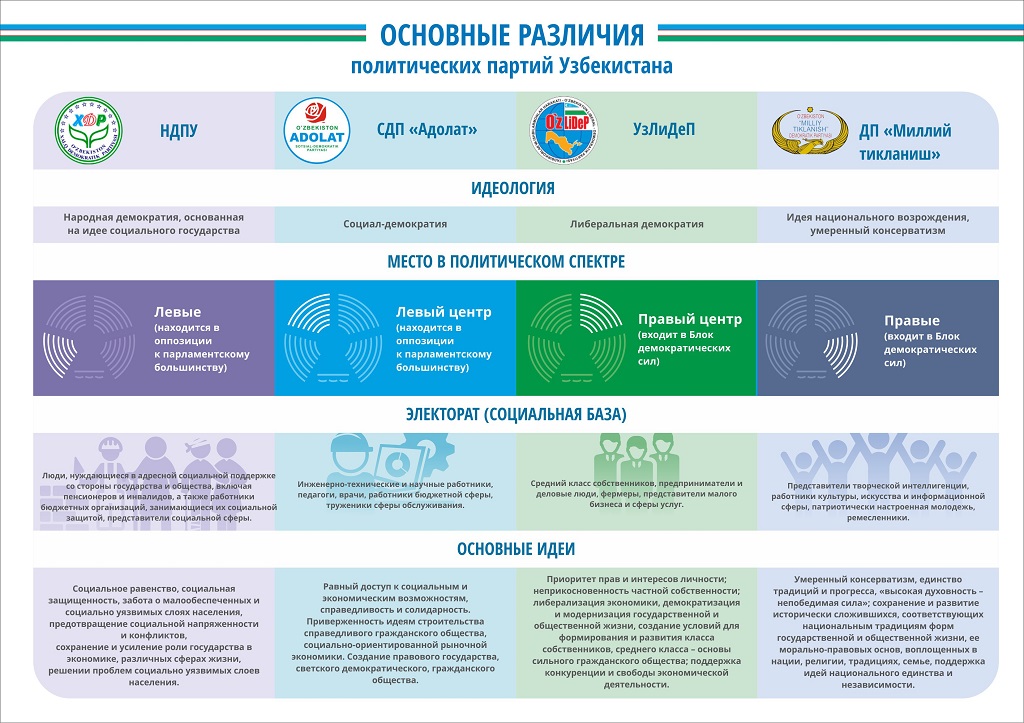 В настоящее время в Узбекистане официально зарегистрировано всего четыре политические партии: