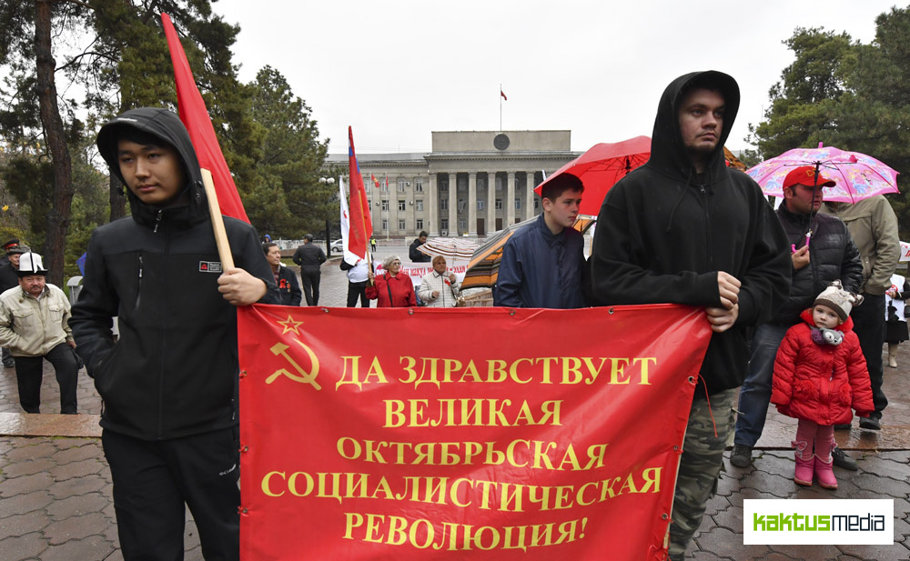 Сегодня, 7 ноября, ПКК провела в Бишкеке митинг в честь 100-летия Великой Октябрьской социалистической революции, на котором присутствовало около двухсот человек.