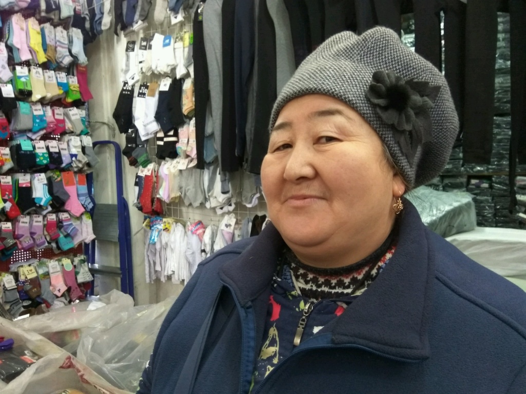 Единственная женщина из всех продавцов, кто согласился на интервью, – родом из Кыргызстана. Начинала ещё на «Дордое» в 1994 году. В двухтысячных переехала в Алматы, здесь вышла замуж.
