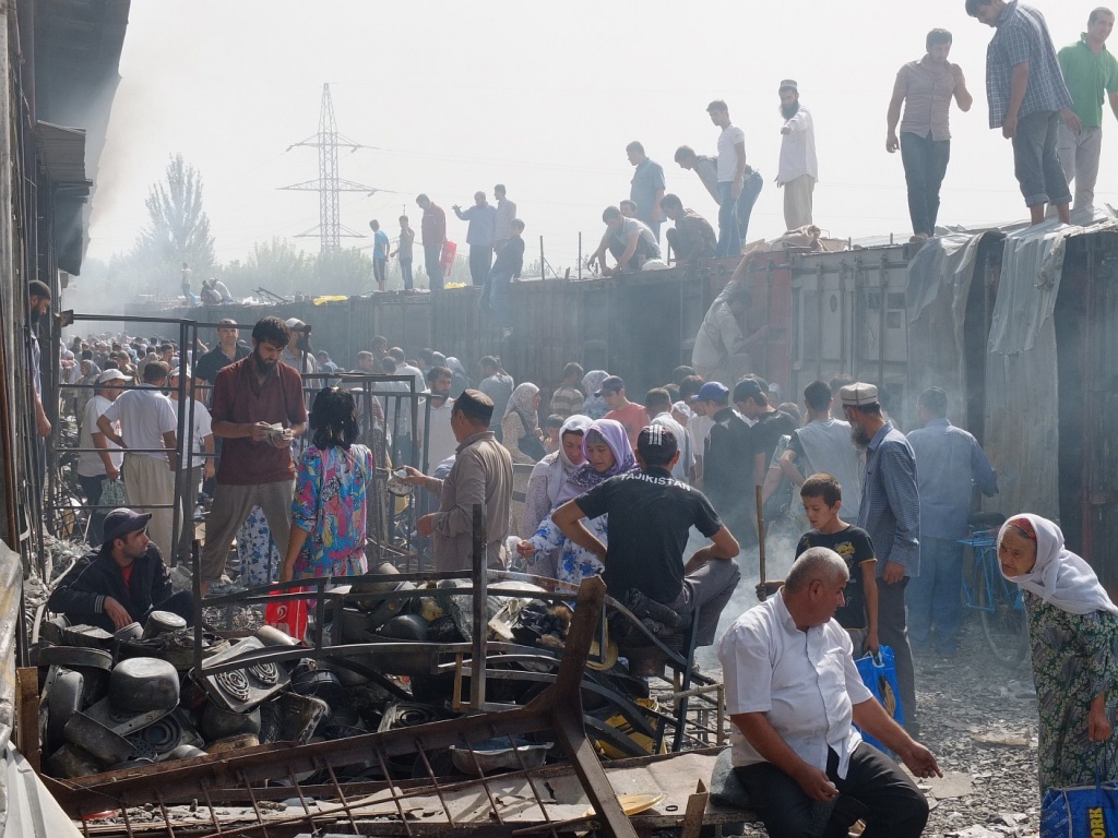 Эти кредиты для некоторых продавцов на «Корвоне» и вовсе стали роковыми. Дело в том, что на протяжении последних 12 лет «Корвон» периодически горит, совсем как алматинская «Барахолка». Он пережил уже восемь крупных пожаров по причине замыкания в электропроводке и поджогов. Самый крупный был в сентябре 2012 года, тогда было уничтожено более 5 тыс. кв. м, сгорело 2 тыс. 550 торговых точек, и тогда же погибли люди — три человека, еще несколько получили травмы.Общий ущерб от всех возгораний составил около $3,5 млн. В 2012 тысячи предпринимателей, работающих на рынке, вышли на улицы Душанбе с требованием найти виновных в поджоге. Люди, на шее у которых висели банковские кредиты, были в полном отчаянии, и городские власти поспешили успокоить народ. Тогда предпринимателям быстро восстановили рынок, продлили сроки погашения кредитов и освободили от налогов.