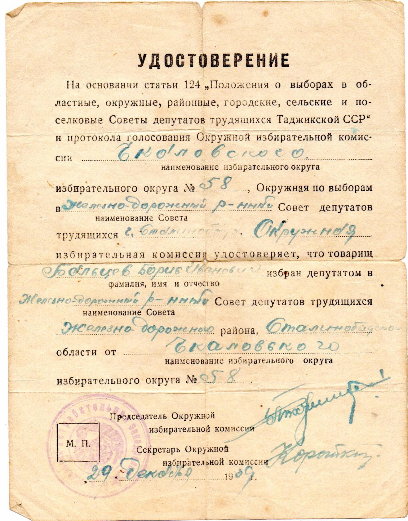 Она выразила свою признательность и благодарность нашей газете за публикацию статьи об её отце, а также членам поисковой группы «Память-201», нашедшим его могилу, и летчикам авиагруппы 201-й военной базы, восстановившим на собранные средства могилу ее отца майора Бориса Бальцева. Лидия Борисовна прислала фотографии отца, сделанные во время его службы в Сталинабаде (Душанбе), и его документы того времени.