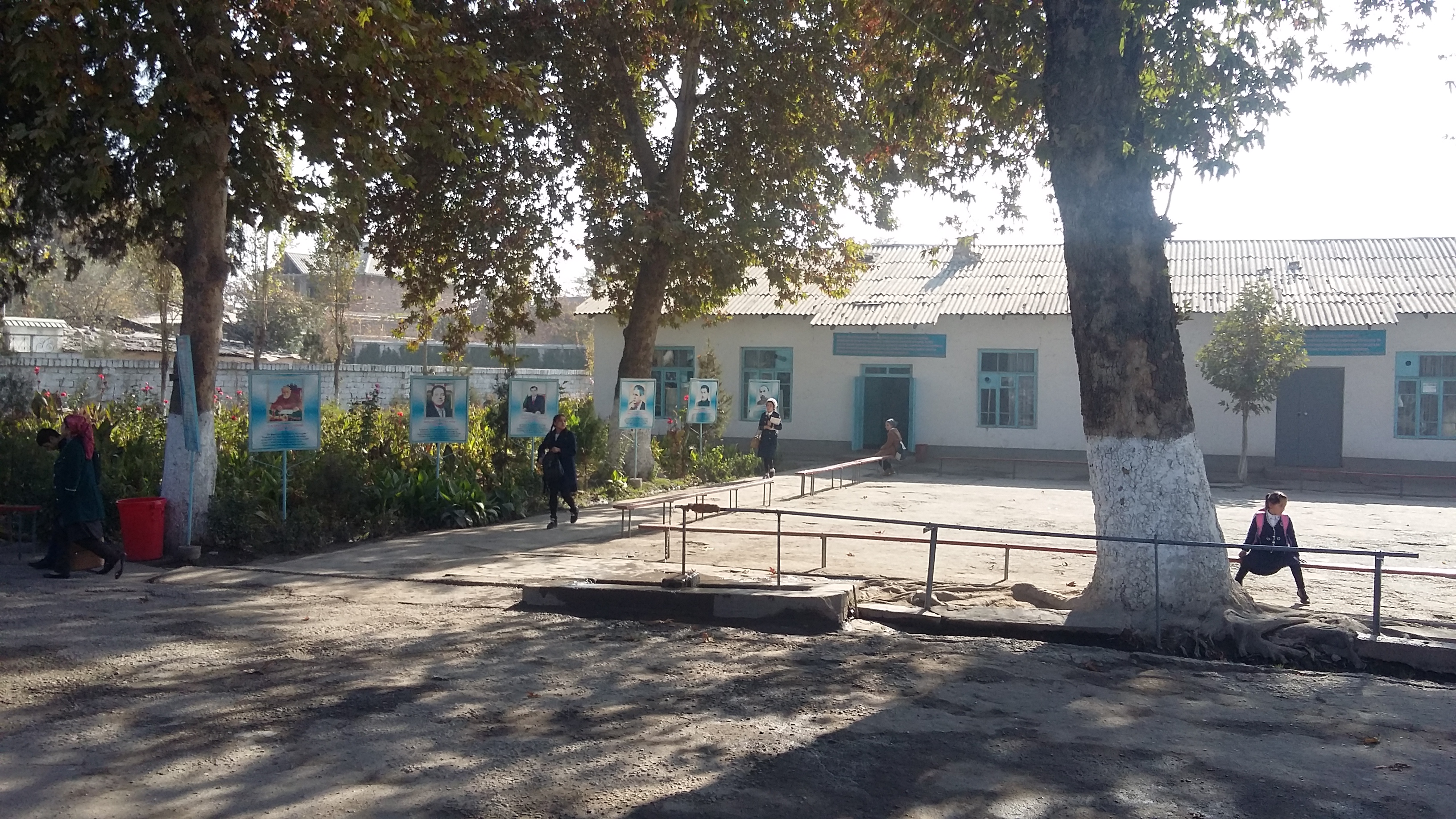 Несмотря на современные баннеры с портретами Лидера нации и Героев Таджикистана, начиная с Садриддина Айни, все в этой школе напоминает советское прошлое сельской глубинки – на календаре XXI век, а дети лишены современных кабинетов с оснащенной лабораторией и спортзала, в холодное время года они просто не ходят на физкультуру, так как школьный стадион превращается в огромную лужу.