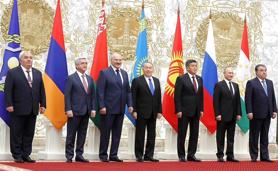 Организация Договора о коллективной безопасности в настоящее время объединяет Армению, Беларусь, Казахстан, Киргизию, Россию, Таджикистан.