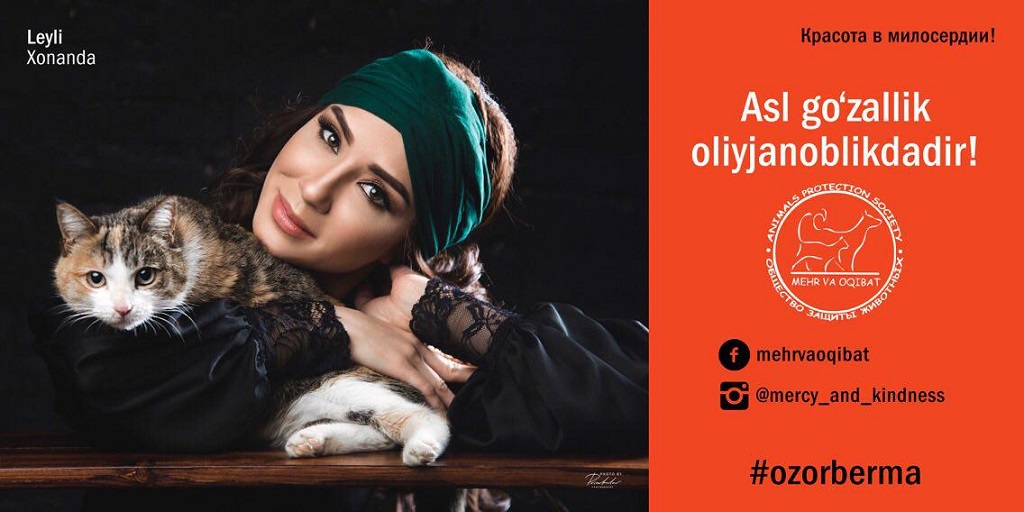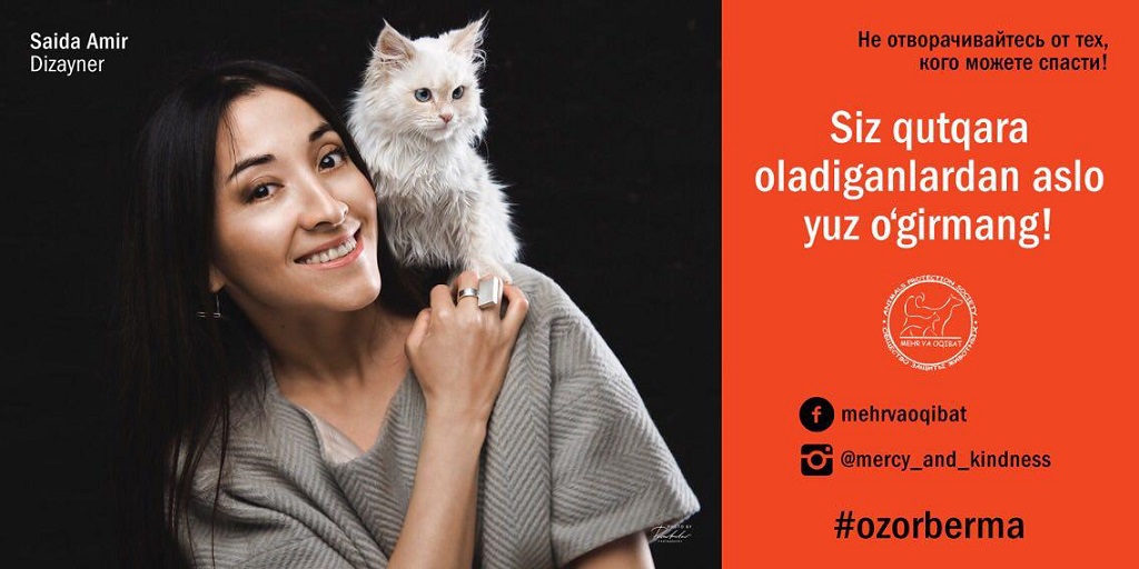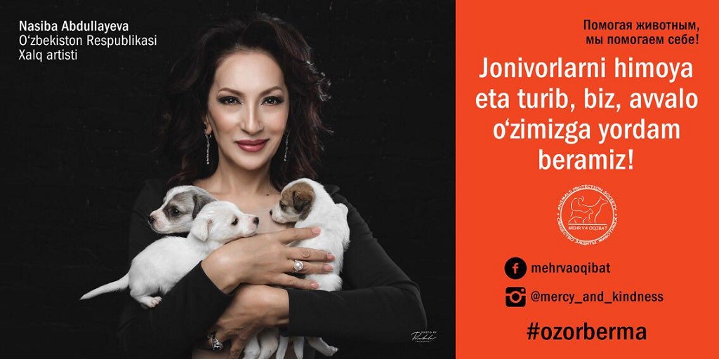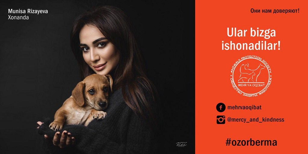 Этой осенью на рекламных площадках и автобусных остановках Ташкента появились необычные рекламные плакаты. С билбордов на жителей и гостей столицы смотрят звезды эстрады, деятели культуры, искусства и спорта – Севара Назархан, Насиба Абдуллаева, Муножатхон Йулчиева, Муниса Ризаева, Асаль Шодиева, Амира Алибекова, Лейли, Бобур Исмаилов, Руслан Нурудинов, Саида Амир. Вместе со звездами на каждом из плакатов запечатлены животные, большинство из которых были спасены на улицах города. Весь проект сопровождается хештэгом #ozorberma («Не относись жестоко») и слоганом «Insonbo’l – Будь человеком». Наш партнер «Открытала Азия онлайн» разузнала подробности.