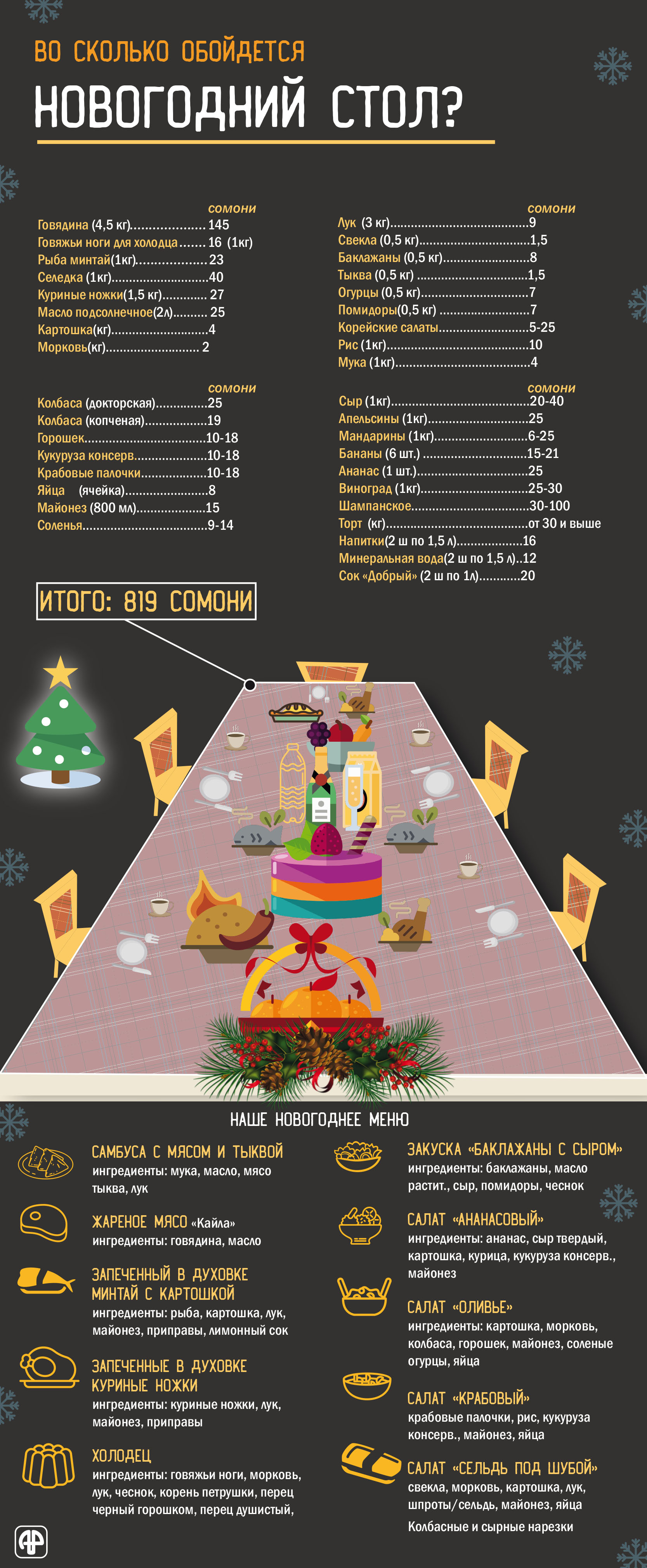 Конечно, продуктовый набор таджикистанцев разного достатка может отличаться существенно. Но статистика – не Форбс, её интересуют средние показатели. Мы рассчитали продукты из расчета на 5 человек.