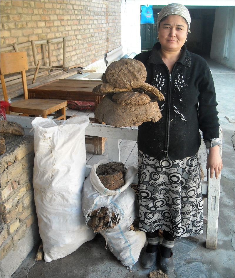 — Наша соседка три года тому назад еле сводила концы с концами. Один фермер ей предложил ухаживать за его восемью коровами. Он сказал ей: «Будешь кормить, чистить их, доить. Взамен забирай весь навоз». Женщина согласилась. Сейчас она машинами продает навоз и неплохо живет. Кроме того, делает сама кизяки, за которыми покупатели занимают очередь, — рассказывает житель Бободжонгафуровского района Абдуджаббор Юлдашев.