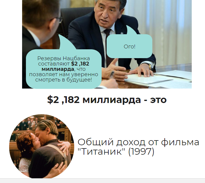 Резерв Нацбанка Кыргызстана равен доходу от фильма «Титаник». Инфографика