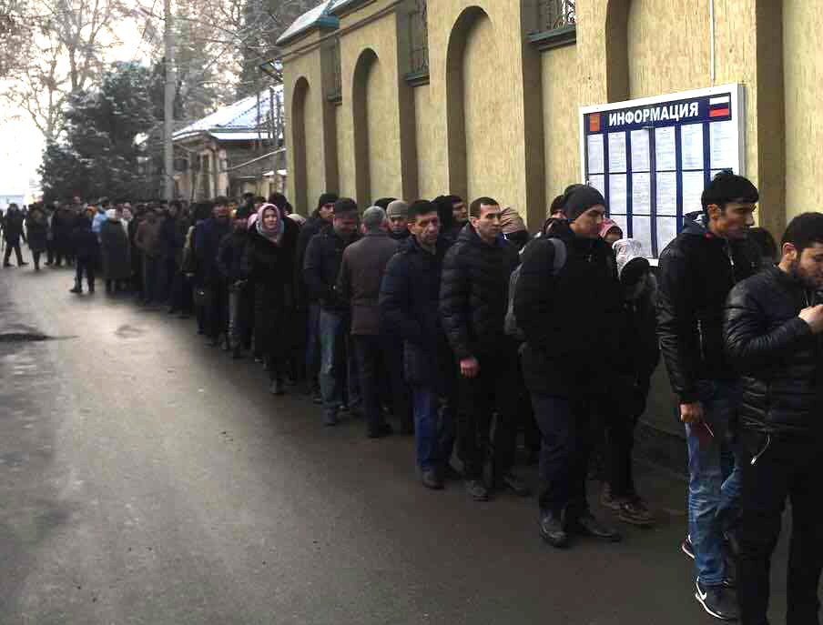 В последние годы число таджикистанцев, желающих уехать жить в Россию, стремительно растет. У здания представительства МВД России по вопросам миграции в Душанбе в дни приема собираются тысячи желающих подать заявление на переезд по программе переселения.