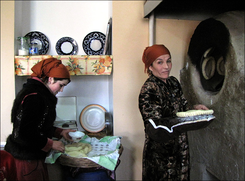— Нет, снохи сами между собой договариваются, кто будет готовить еду, кто — печь лепешки.