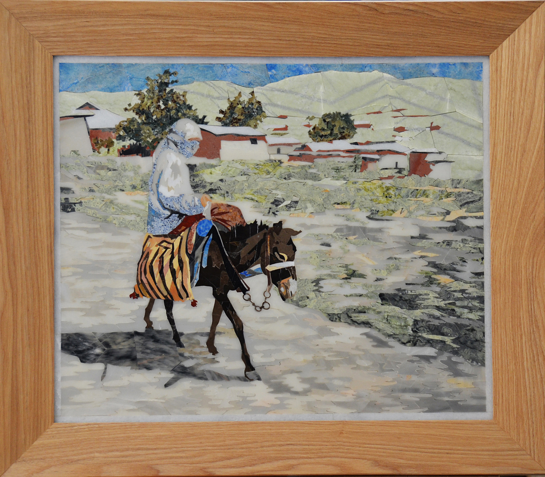 Мастер придает каменным заготовкам нужную форму и фактуру. Но данному процессу предшествует другой, не менее сложный период определения цветов, необходимых для создания картин. Затем образец с нанесенным на него контуром — распределением цветовой гаммы — переносится на кальку, а с кальки через копирку — на заготовленные пластины. И вот уже фигурки, чем-то напоминающие пазлы, вручную вырезаются из каменных пластин.